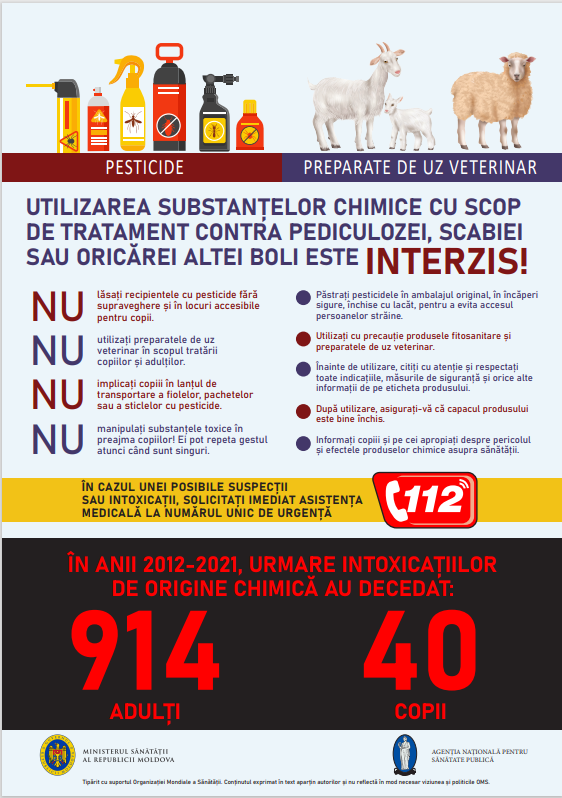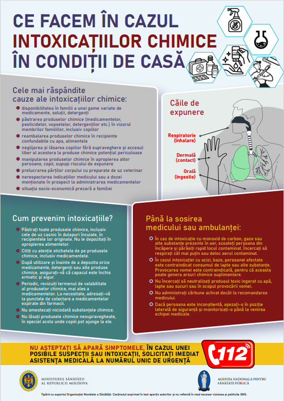 Pe parcursul acestei săptămâni, sunt realizate activități de informare/sensibilizare și educare (discuții publice, instruiri) a categoriilor vulnerabile de populație, în special a copiilor, dar și a publicului larg în ansamblu, cu privire la pericolele şi consecinţele intoxicațiilor de etiologie chimică, măsurile de prevenire și protecție a sănătății.